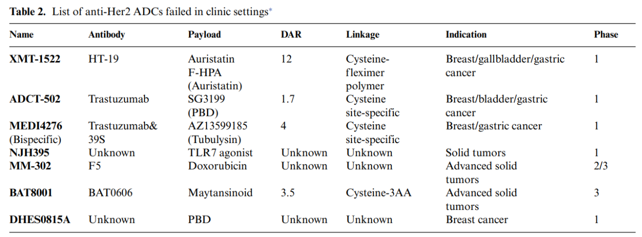 此外,有七个Her2靶向的ADC被宣布终止临床试验。