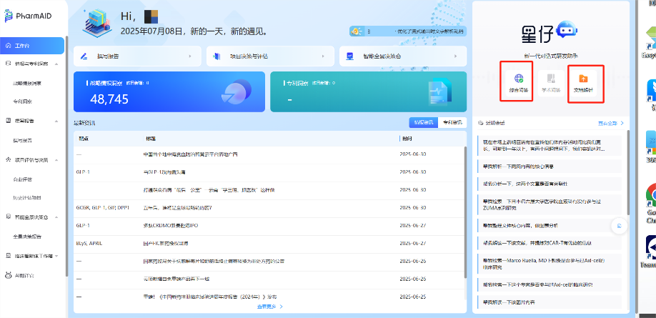PharmAID是集综合问答与文档解析于一体,深度贴合医药行业特性,为集团内部工作场景量身打造的AI智能助手。从技术内核来看,这款工具依托于海量的医药专业数据库,涵盖全球范围内的医药文献、临床试验数据等,同时包含内部相关文件。其检索系统采用了先进的自然语言处理和语义理解技术,不仅能精准识别关键词,还能理解复杂的语义逻辑,让员工快速锁定高价值文献。