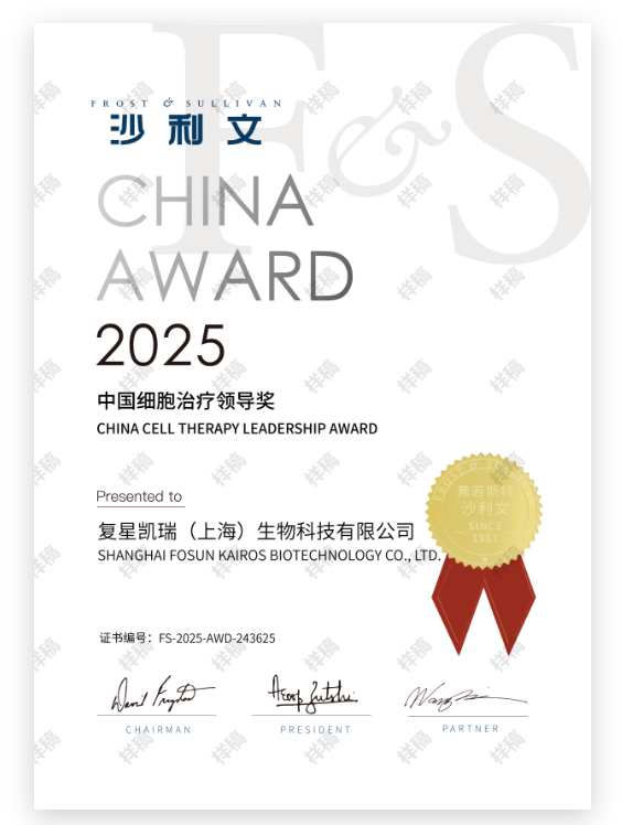 8月27日,第十九届沙利文全球增长、科创与领导力峰会在上海盛大开幕。复星凯瑞凭借在细胞治疗领域的技术突破与行业引领,荣获峰会颁发的“2025中国细胞治疗领导奖”。这一荣誉不仅体现了企业创新实力,更彰显了企业在中国细胞治疗产业中的影响力。
