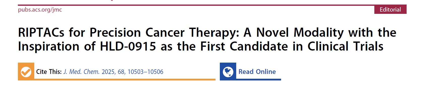 近日,J. Med. Chem.期刊上公布了一篇名为“RIPTACs for Precision Cancer Therapy: A Novel Modality with the Inspiration of HLD-0915 as the First Candidate in Clinical Trials”的文章,描述了一种新型的癌症治疗模式——调节诱导近邻靶向嵌合体(RIPTACs),特别是HLD-0915,这款首个进入临床试验的候选药物作为一种新型癌症治疗策略的潜力和前景。