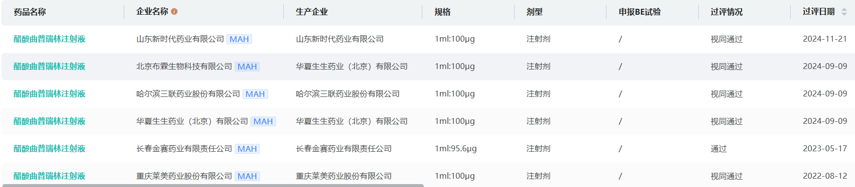 根据规格判断,该产品应为长效制剂,这也意味着,齐鲁成为了国内首家以4类仿制路径提交醋酸曲普瑞林长效制剂上市申请的企业。