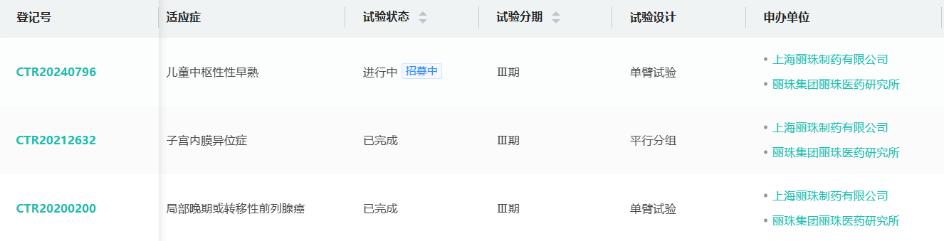 2.2类改良品种,完成Ⅲ期临床试验,目前已获批前列腺癌和子宫内膜异位症适应症,儿童性早熟适应症尚在临床实验中。