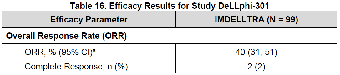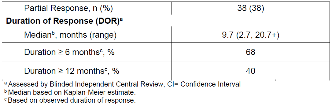 DeLLphi-301临床中,99例患者ORR为40%,其中CR为2%,mDoR为9.7个月。