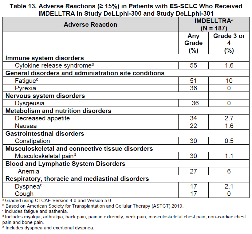 Tarlatamab的安全性数据如下。