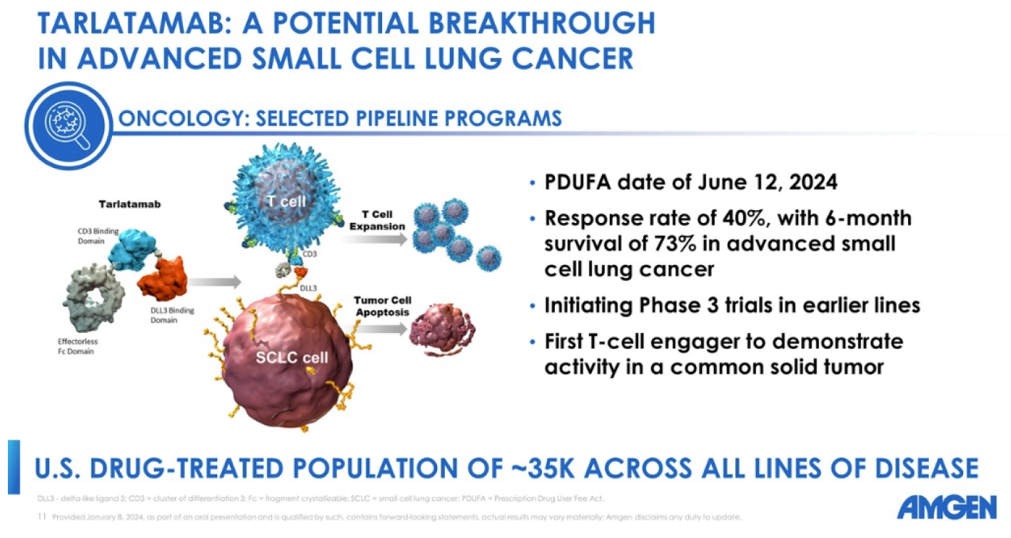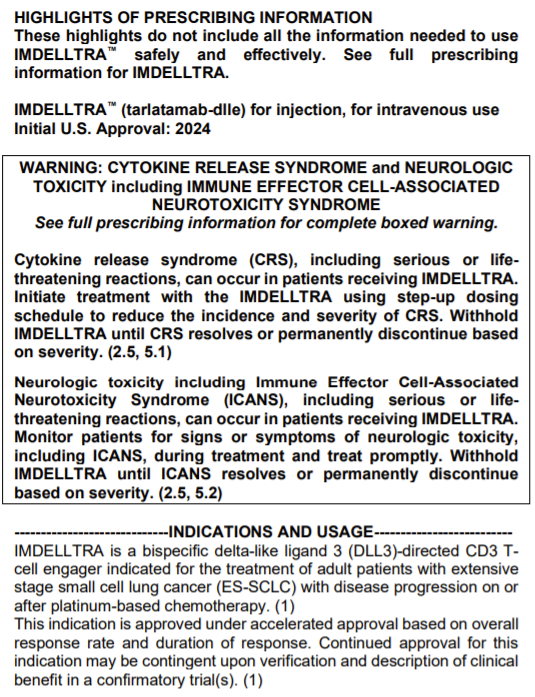 近日,FDA加速批准安进DLL3/CD3双抗Tarlatamab上市,用于治疗广泛期小细胞肺癌(ES-SCLC),商品名为Imdelltra。
