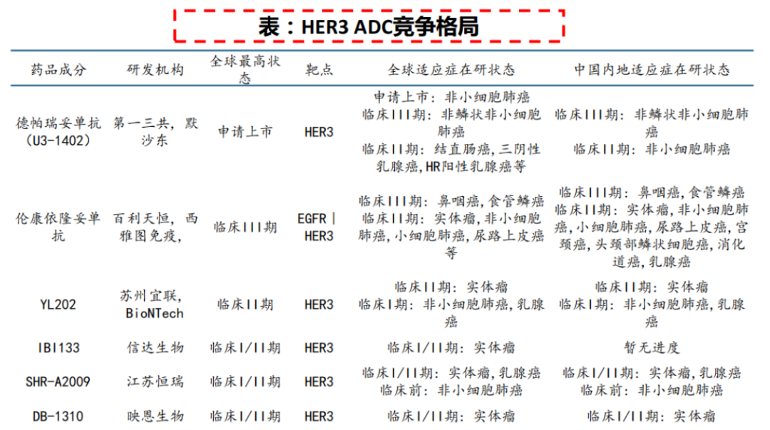 随着HER3 ADC药物在实体瘤的治疗潜力得到证实,不少药企纷纷布局。