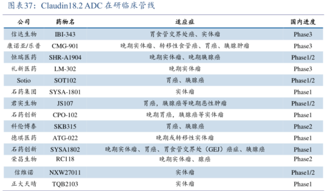 Claudin18.2作为广谱抗癌靶点,高度表达于胃癌、胰腺癌和乳腺癌等多个实体瘤中,也是必争之地。
