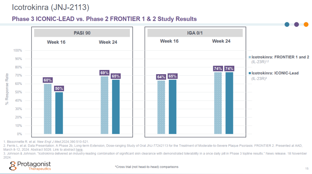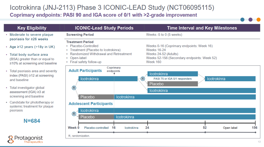 ICONIC 3期临床开发计划中的其他研究正在进行中,包括ICONIC-ADVANCE 1和ICONIC-ADVANCE 2,这些研究将评估icotrokinra与安慰剂和deucravacitinib(TYK2 变构抑制剂)相比在治疗中度至重度斑块性银屑病的安全性和有效性。ICONIC-PsA三期计划将于2025年初启动,该计划将研究icotrokinra在银屑病关节炎中的作用。
