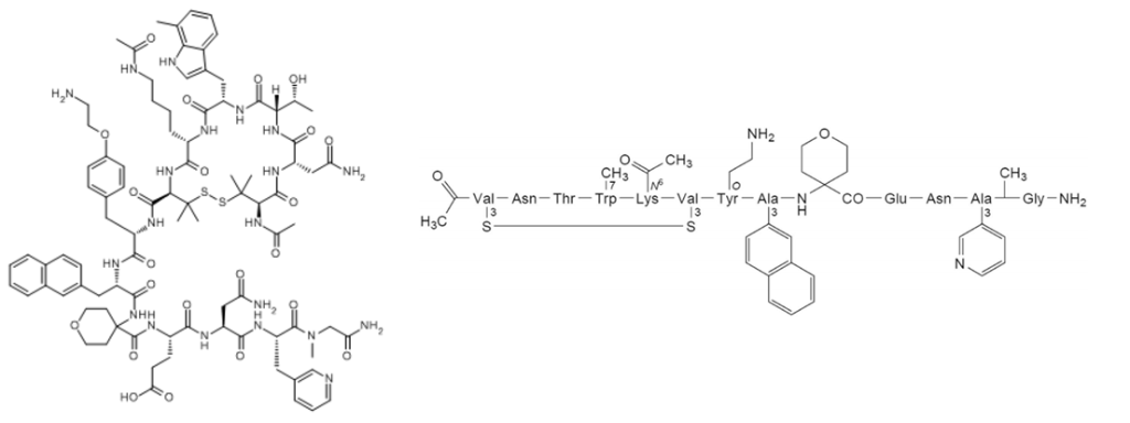 Icotrokinra(JNJ-2113)为一种大环肽,在人细胞中,可有效且选择性地抑制近端IL-23信号传导,而不影响IL-12的信号。结构如下(左为结构,右为序列):