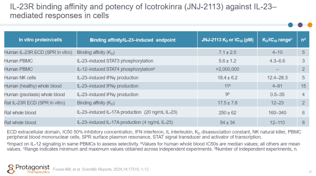 Icotrokinra (JNJ-2113)在IL-23介导的细胞实验中展现了较好的体外药效。